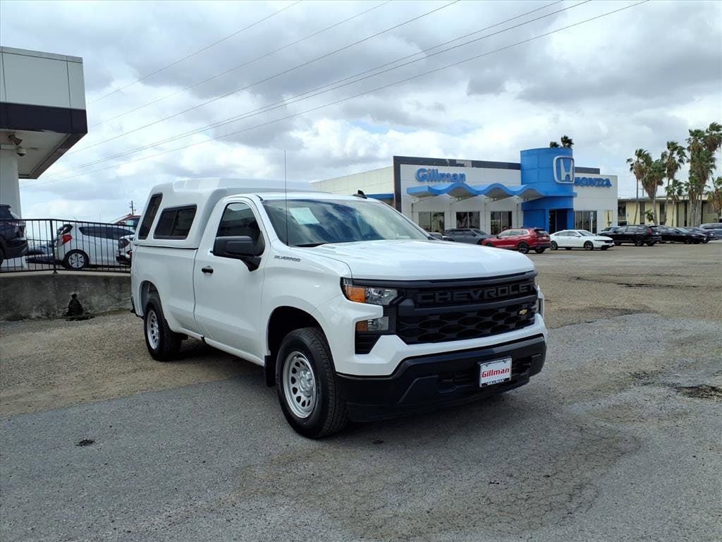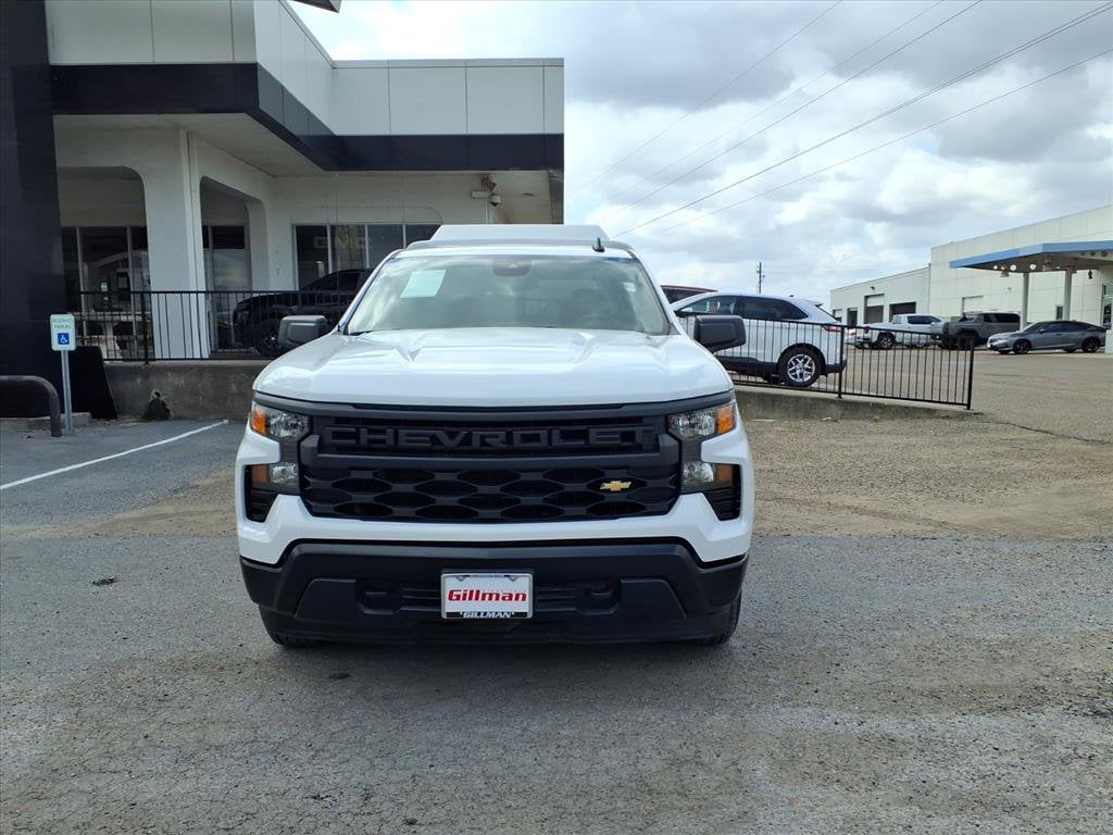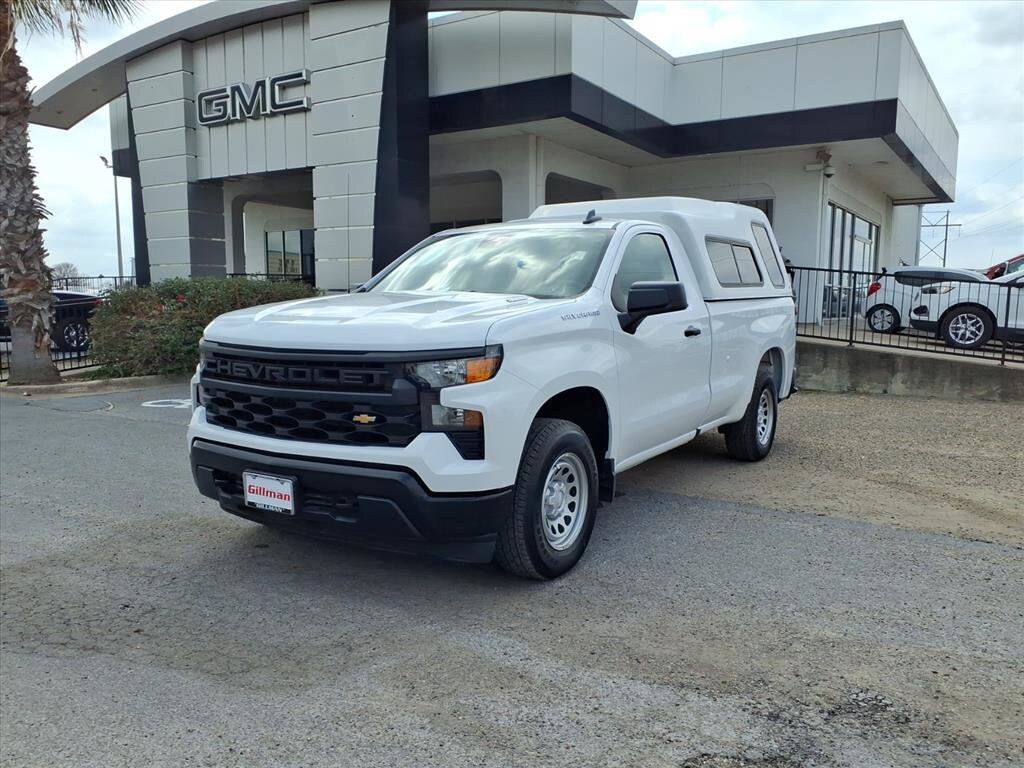Gillman's Lifetime Engine Warranty lasts as long as you own your vehicle - free with the Gillman Pre-Owned Promise. If the vehicle isn't right for you, return it in purchase condition within 2 days or 200 miles as part of our Happy-Driving Guarantee. (Valid on vehicles under 90,000 miles and less than 7 years old). Drive home in a like-new 2025 Chevrolet Silverado 1500 Work Truck! With just 1,758 miles, this white regular cab 4x2 is ready to tackle any job. Powered by the TurboMax 2.7L Turbo I4 engine paired with an 8-speed automatic transmission, it delivers power and efficiency. Enjoy advanced tech like wireless Apple CarPlay/Android Auto, Bluetooth, a 7-inch Chevrolet Infotainment touchscreen, and Amazon Alexa compatibility. Safety is a priority with front automatic emergency braking, lane keeping assist, pedestrian detection, and a rearview camera. Stay connected with OnStar and Wi-Fi hotspot capability. Practical features include the WT Value and WT Convenience Packages, trailering equipment, deep-tinted glass, and an electric rear-window defogger. Convenience comes standard with keyless entry, push-button start, cruise control, power locks, and more. Rugged and reliable, this Silverado is the perfect addition to your fleet or business. All vehicles subject to prior sale. We are not responsible for typographical errors and may change information without notice. Photos may not depict the actual vehicle. Tax, title, and license fees not included. Dealer Discount available to all buyers.Vehicles purchased from Gillman Automotive Group include a Bring It Back Guarantee: return the vehicle in purchase condition within two days or 200 miles. New current-model-year vehicles and qualifying pre-owned vehicles (under 90,000 miles and less than 7 years old) are eligible. Guarantee is non-transferable and has no cash value. Lifetime Warranty available on select pre-owned vehicles. See dealer for details; restrictions may apply.